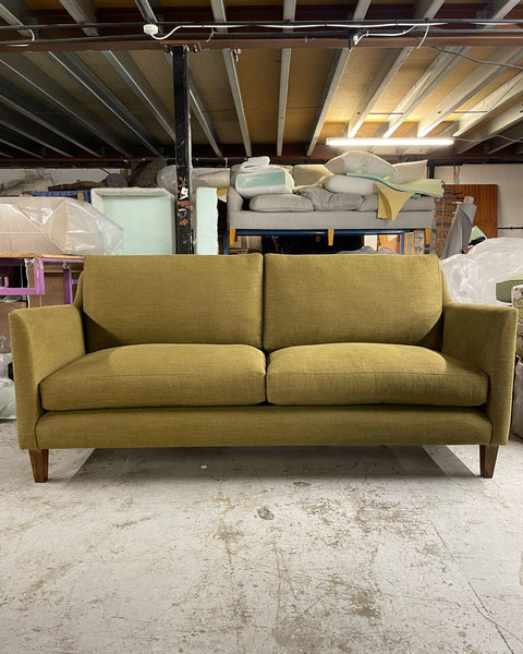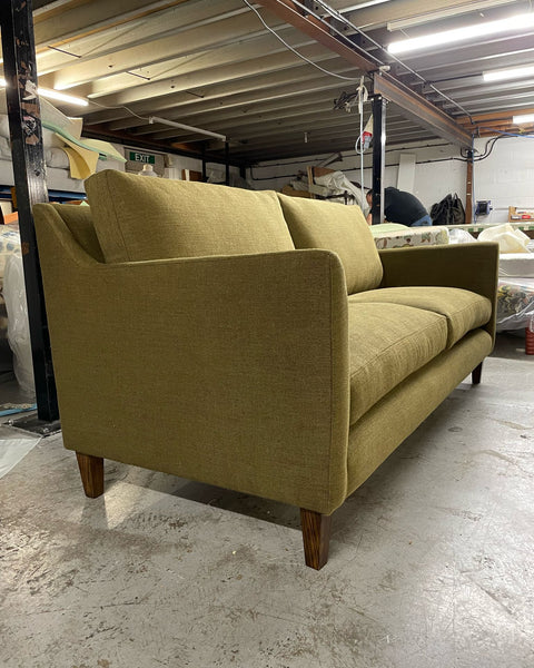 I wanted to focus on timeless shapes, and most importantly of all comfort! Just like our ottomans, our sofas are traditionally handmade to order in Derbyshire. Our locally made sofa frames use FSC European sourced kiln dried timber and have a lifetime guarantee and as standard our cushions are Origins foam (sourced from plant polyols instead of petrochemicals) wrapped in feather.