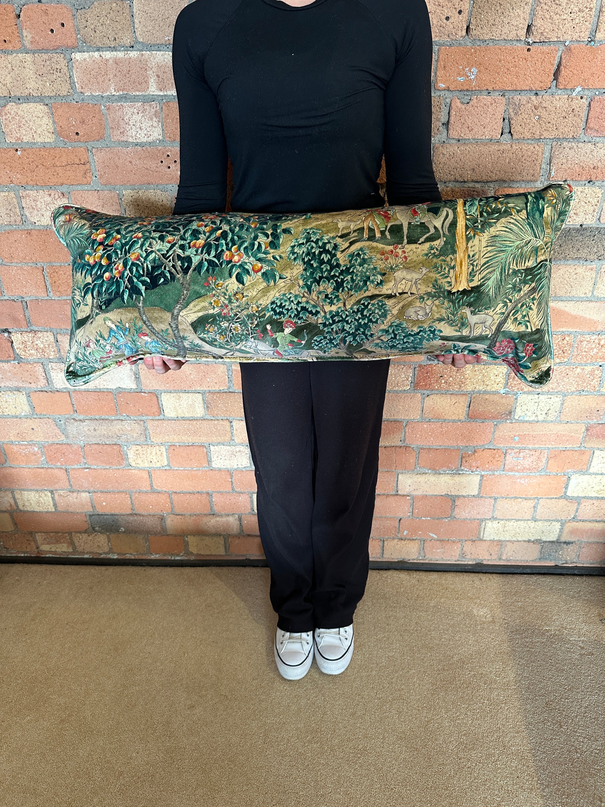 Bolster Cushion 90x35cm in GP&J Baker Ramayana velvet Emerald and Sand