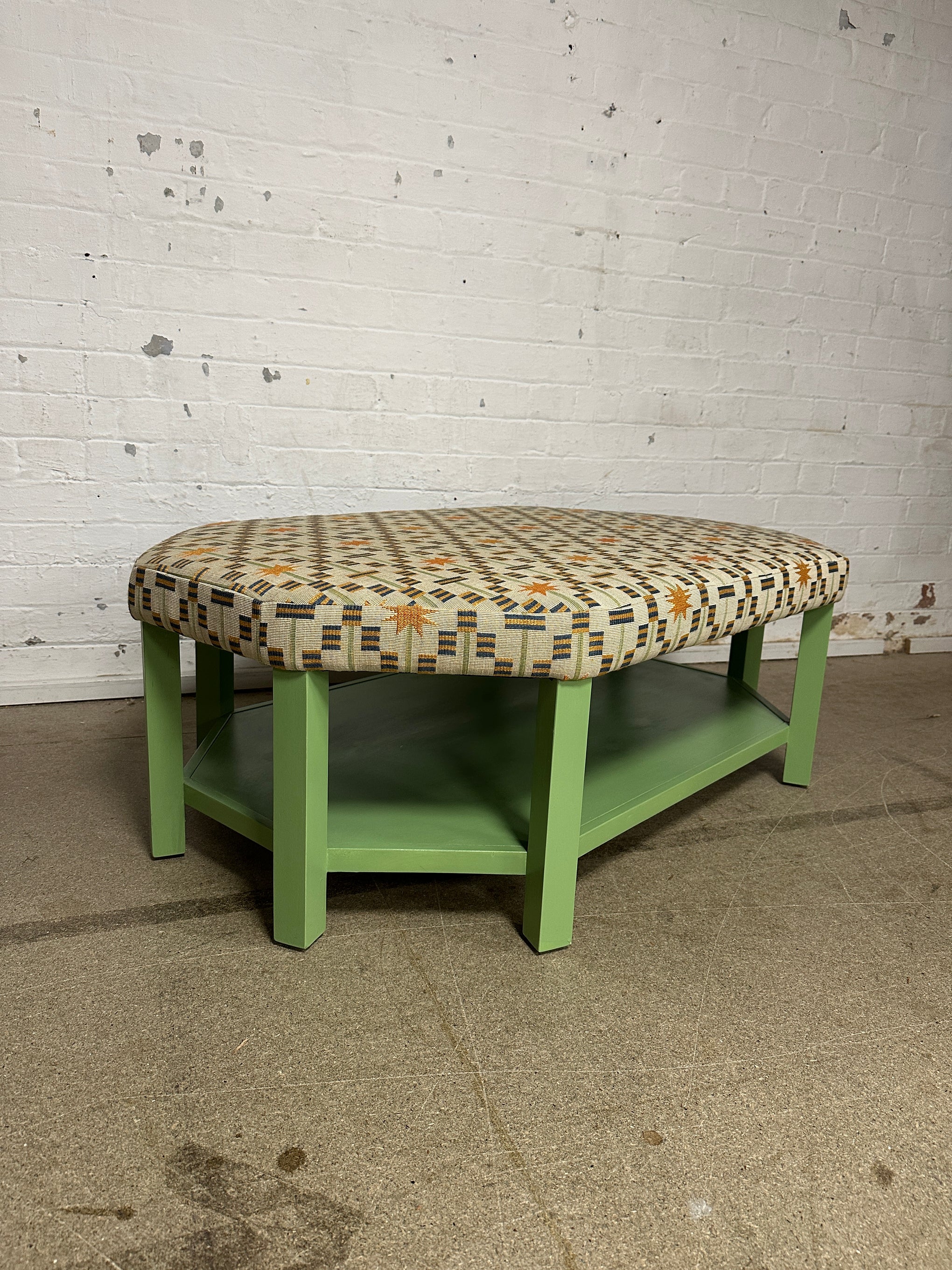 Annie Octagon Ottoman In Edward Bulmer Invisible Green & Studio Ashby Afua